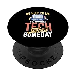 Be Nice To Me You May Need Tech Support Someday. If algorithm, code, programming are not foreign words for you, then get this cool computer scientist design.You do IT support in a company, then get the design. Computer science code algorithm Support perfect for a programmer developer computer scientist system administrator admin for a IT and Informatics Department PopGrip with swappable top; switch out your PopTop for another design or remove it completely for wireless charging capabilities. (Not compatible with Apple MagSafe wireless charger or MagSafe wallet.) Expandable stand to watch videos, take group photos, FaceTime, and Skype handsfree. Advanced adhesive allows you to remove and reposition on most devices and cases. Note: Will not stick to some silicone, waterproof, or highly textured cases. Works best with smooth, hard plastic cases. Will adhere to iPhone 11, but not to the iPhone 11 Pro nor the iPhone 11 ProMax without a suitable case.