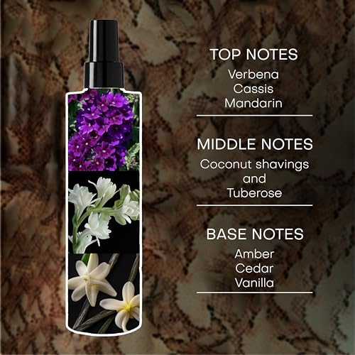 - DISEÑO DE BOTELLA TENDENCIAL. Este diseño de botella con estampado de serpiente es atrevido y audaz, y también lo es la mujer que lo lleva. Con una punta de nebulización fina para dispersar el spray de manera uniforme, este diseño de botella elegante y moderno es perfecto para cualquier colección de fragancias.