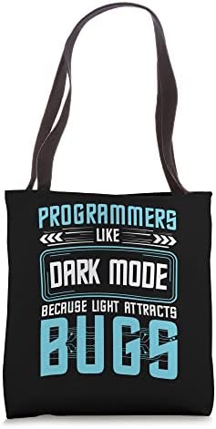 Programmers like dark mode because light attracts bugs Tote Bag