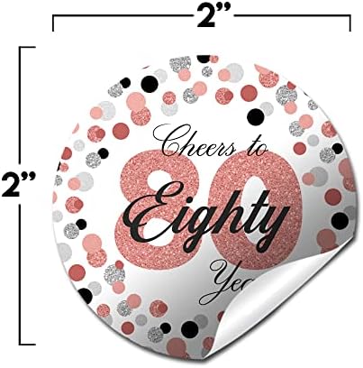 - Cuteness Overload: Designed by a talented mom, these fun stickers feature a bold rose gold 80 on a white background with rose gold, silver and black polka dots. These festive stickers are a great way to celebrate 80 years! (glitter is digital and not actual glitter). Amanda Creation. Original design by Amanda Creation.