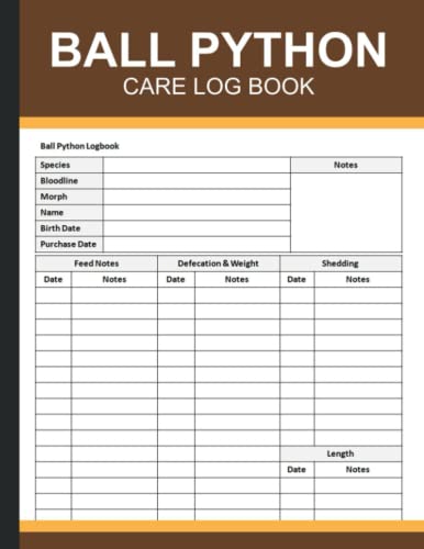 Ball Python Care Log Book: Ball Python Logbook, Ball Python Care Journal, Keep Record of Bloodline, Birth & Purchase Date, Feed Notes, Shedding, Humidity, Temperature, Etc. 100 Pages