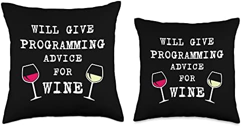 Programming Advice For Wine Computer Coding Funny Programmer Throw Pillow