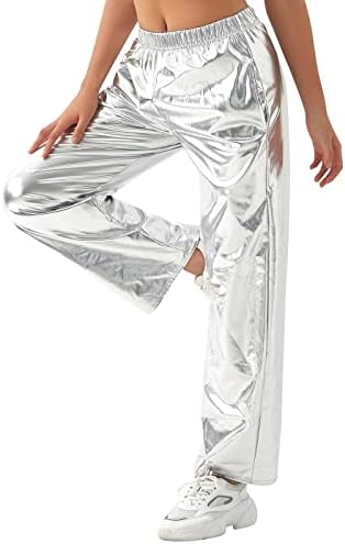 ODIZLI Womens Shiny Metallic High Waist Stretchy Jogger Pants Holographic Hip Hop Club Wear Streetwear