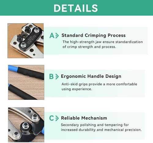 - 【High Reliability】The jaw is made by EDM wire cutting process for more durability and precision.The crimper body is made of high quality steel die-casting. They are subjected to strict quality inspection process before leaving the factory.