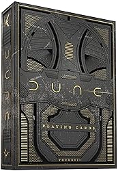 - The world of DUNE in your hand. The outer packaging is simply astonishing. The front of the box is designed in the form of a stillsuit, weathered by the harsh elements of Arrakis. Complete with foil accents that shimmer like spice in the air, along with sculpted embossing and debossing that gives the box a hardened, tactile sensation. I must not fear. Premium playing cards by theory11 bringing all of your favorite characters from Dune to life. Set foot on the harsh desert planet Arrakis and protect the spice from falling into the wrong hands! Follow the journey of Paul Atreides and partake in his mission to ultimately save humanity. Dune Playing Cards feature completely custom artwork in every aspect of the design, with the Aces, Jokers, box design, & court cards inspired directly by fan-favorite characters and events in the critically-acclaimed film. Don’t stare too long at the back design, you might get devoured by the open mouth of the sandworm!