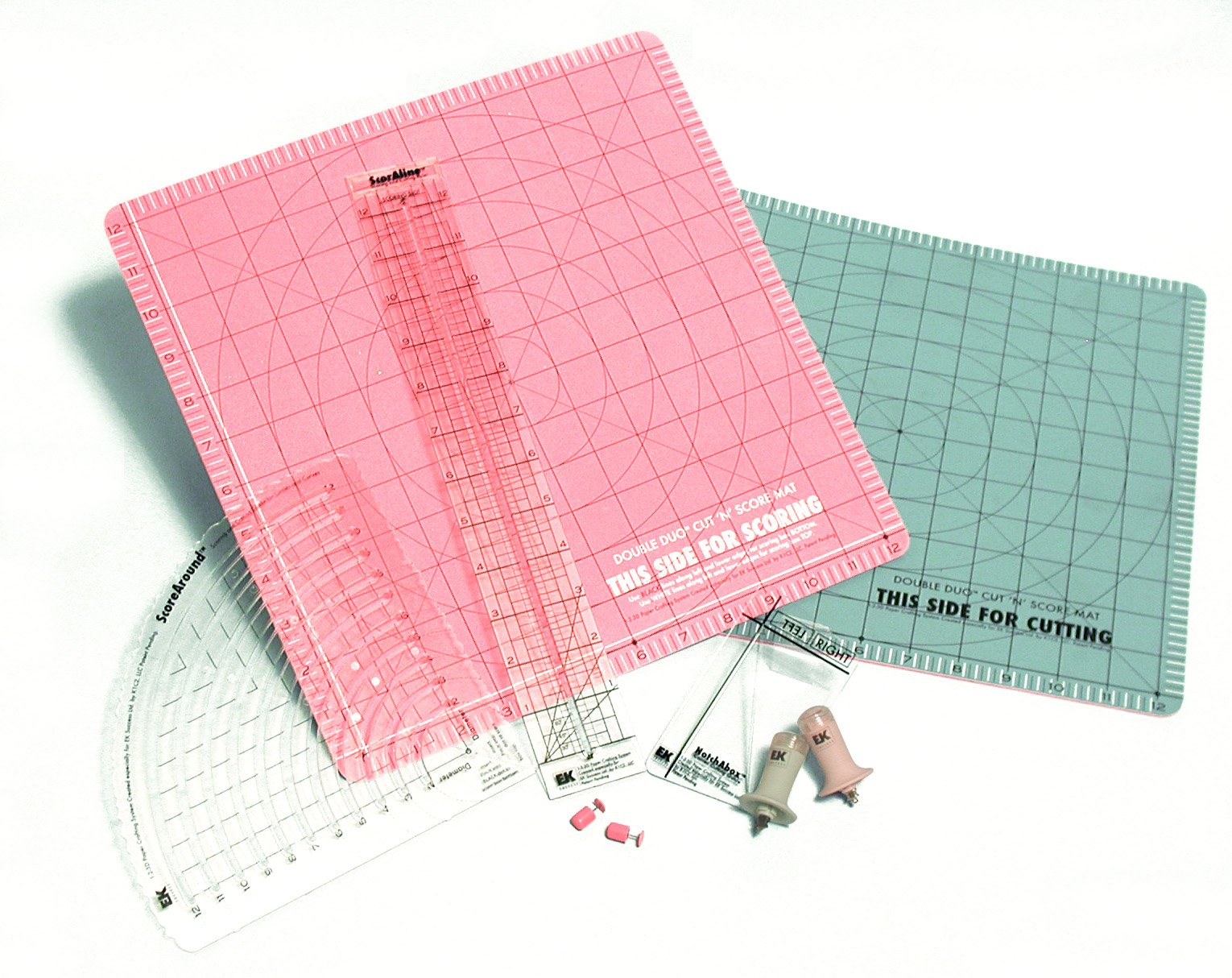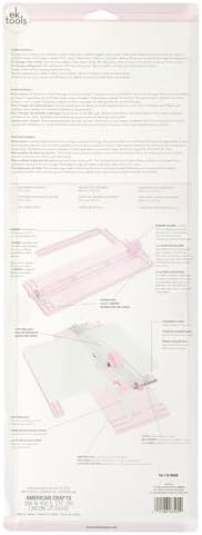 Quickly and accurately cut paper up to 15 inches with the EK Tools rotary paper trimmer. This special trimmer has a measuring surface of 12x5 inches, and an extended measuring guide that bends to 15x6 inches. Convenient grid lines come in 0.25-inch increments for accurate measuring, and a hinged cutting arm features a magnetic lock to hold everything in place while you work. Plus, gripper feet on the bottom means no slipping or sliding! This package includes one rotary paper trimmer in pink. Imported.