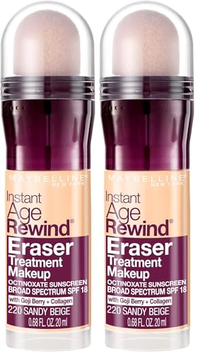 - Maybelline Instant Age Rewind Eraser: Elimina la apariencia de ojeras, corrige el aspecto de la rojez y ilumina la piel apagada con una base antienvejecimiento multiuso con SPF; Aplicadores exclusivos que cubren, suavizan y rellenan