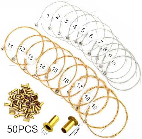 Lyre Harp A Sets of 19 Replacement Metal Strings with 50 Pcs Gold Brass Hollow Rivets