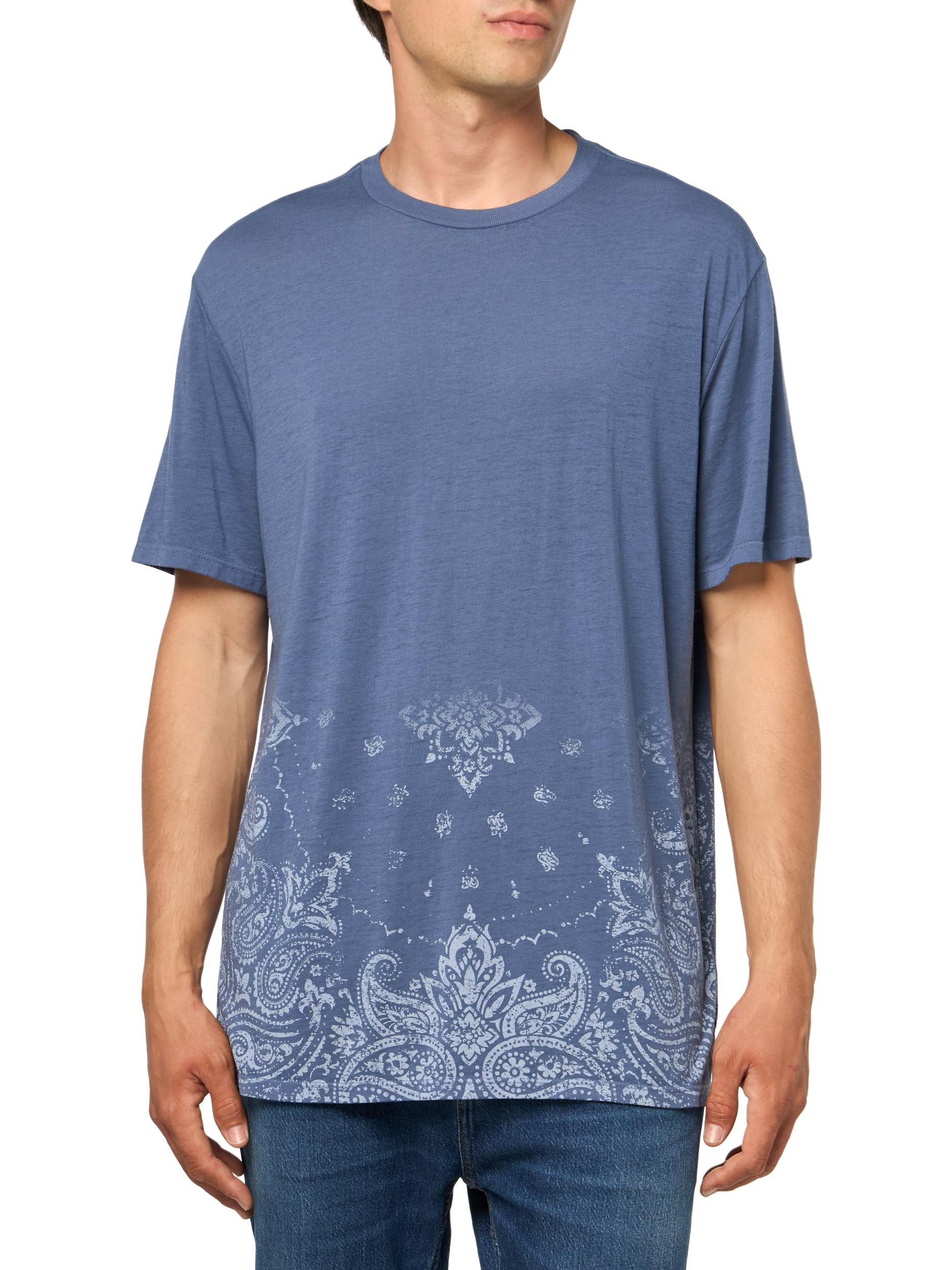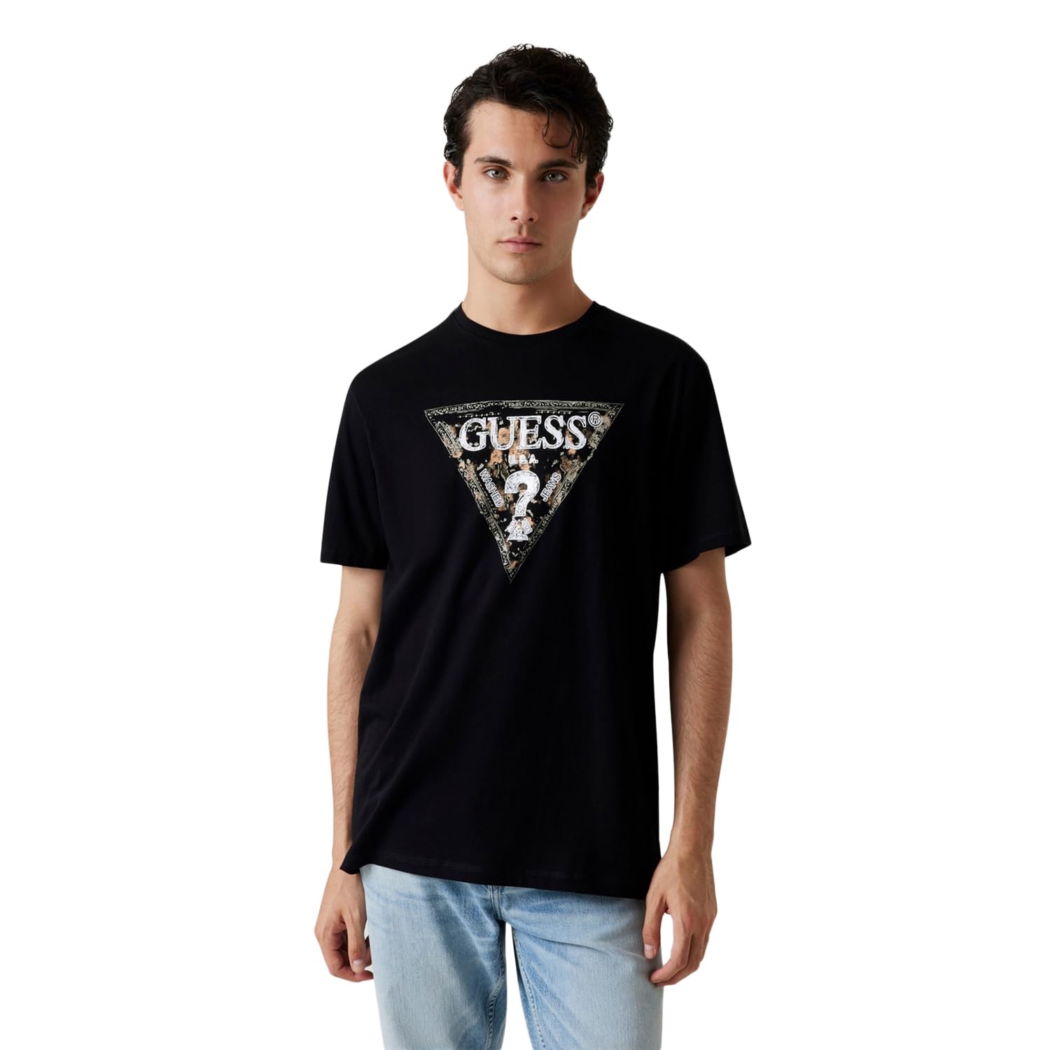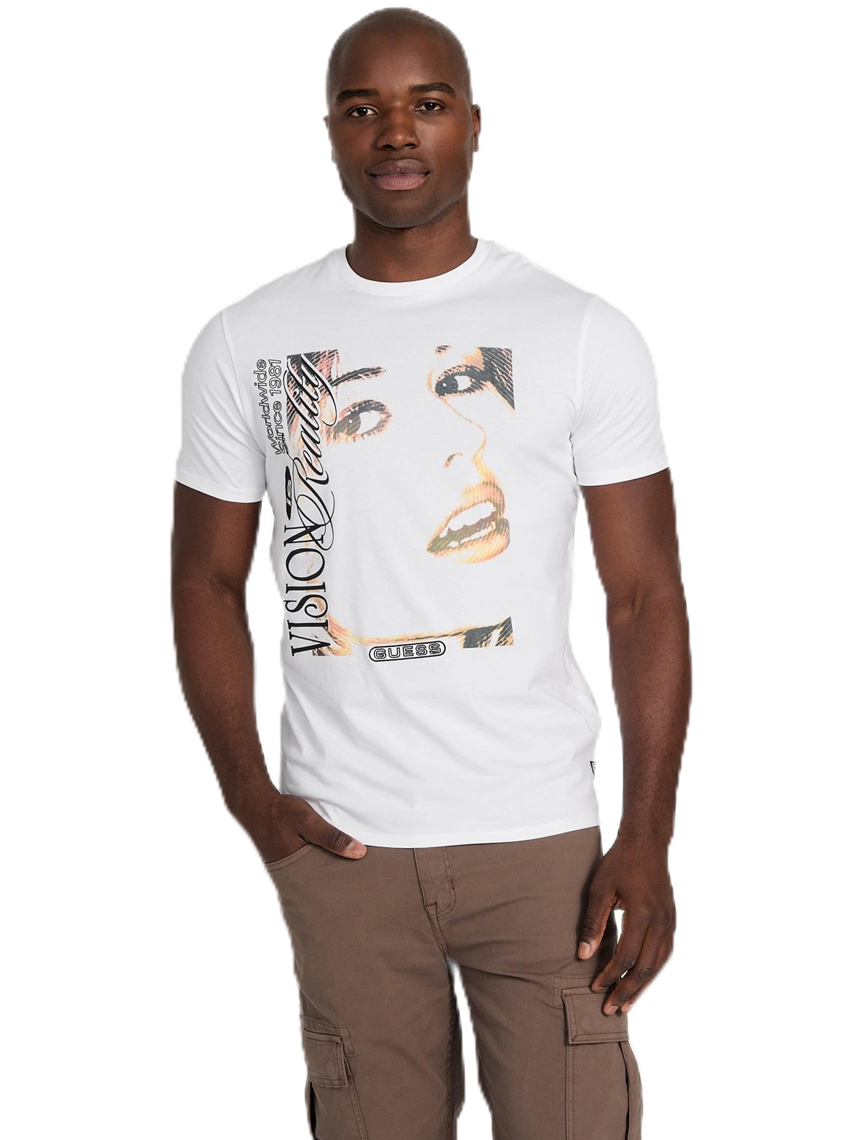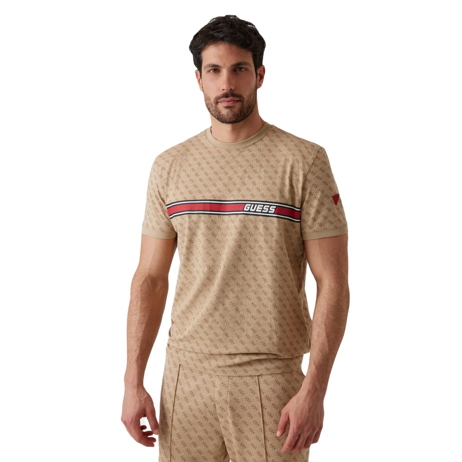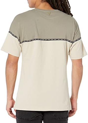 Complete your casual look with this crewneck tee featuring a color-block design with skinny logo tape at the border on the chest and short sleeves. Uses organic cotton fiber.