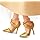 - Her champagne-colored satiny dress features a tulle skirt overlay that shimmers with gold stars.