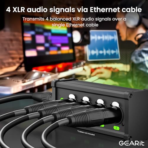 GEARit 4 Canales Múltiples Red XLR/DMX/AES-EBU a Ethernet Compatible Ethercon RJ45 Cat5/Cat6 Extender para Escenario en Vivo, Sonido, Iluminación, Estudio de Grabación de Audio (1 Par: 4 XLR Macho + 4 Hembra)