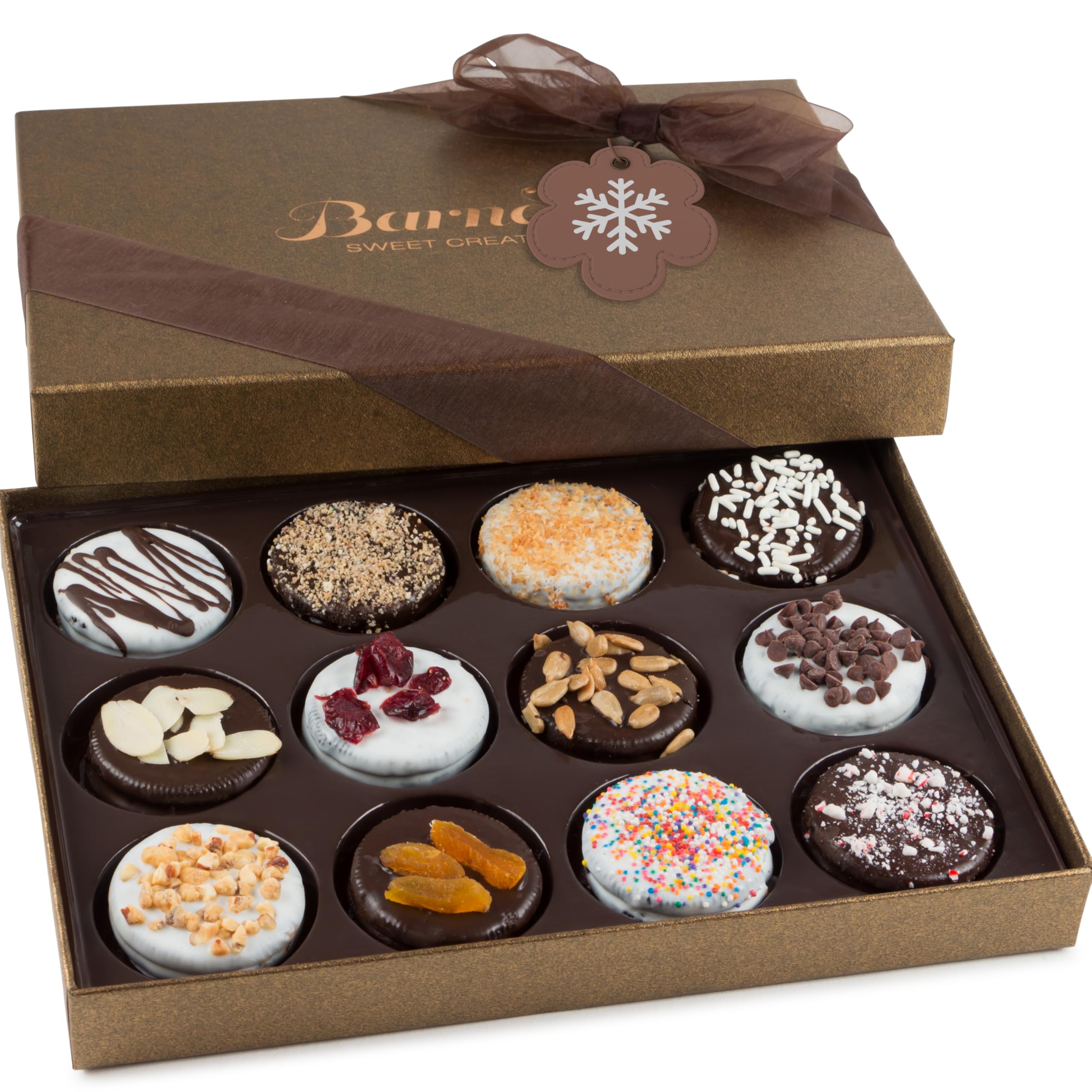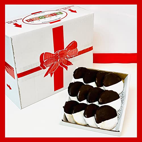A real taste of NY, 12 delicious mini black & white cookies shipped in a classic gift box. These tasty vanilla cookies are topped with delicious vanilla and chocolate icing will bring back memories for you or make for a tasty gift ! Bring home an authentic NY treat! GIFTS THEY WILL REMEMBER! Give your friends and family an authentic taste of NY with our gourmet cookie gift box! There are 12, 3" black and white cookies topped to perfection with delicious chocolate & vanilla icing.