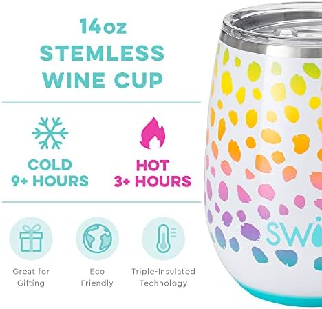 Swig Life 14oz Stemless Wine Cup, Insulated Wine Tumbler with Lid, Stainless Steel Travel Tumbler (Wild Child)