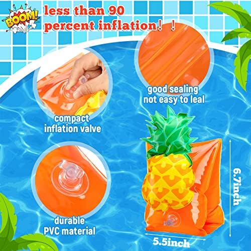 - Bright color and cartoon patterns: the arm floaties are designed with bright colors, which include blue, red, pink, orange and more, full of summer vibe; The lovely cartoon patterns on the armlets includes watermelon, strawberry, pineapple, and cherry, which can arouse children's interest towards swimming