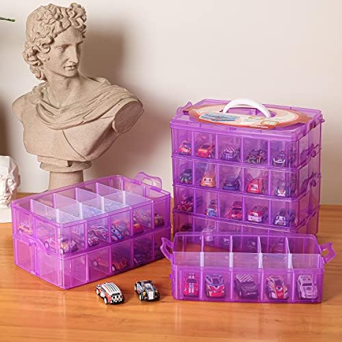 Sooyee 7 Layers Stackable Storage Container, 70 Adjustable Compartments Stackable Storage Container for Kids Toys, Art Crafts, Jewelry, Supplies, Mini Case & Letter Sticker Included,Clear,Purple