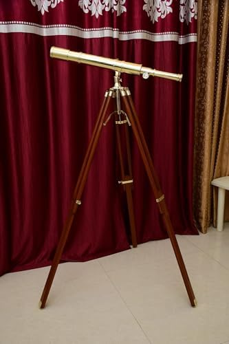 - Material : Solid Brass and Excellent hard Wood, Color : Shiny brass Finish and brown, Crafted from solid brass, this telescope is mounted on a sturdy wooden tripod. A sturdy wooden And Brass tripod supports the telescope when standing that adds class and sophistication to any room