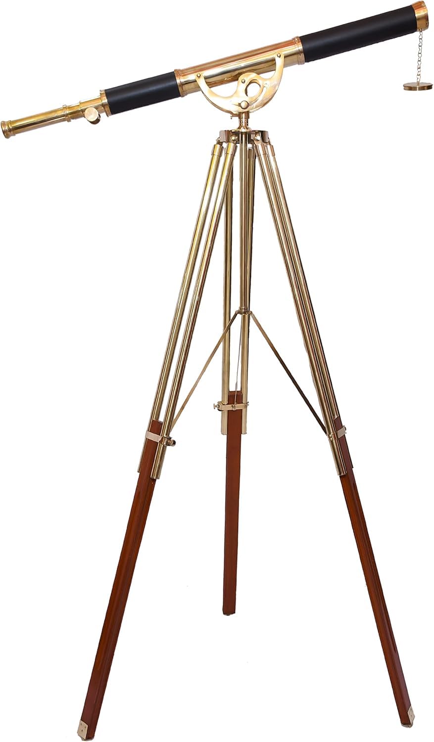 - The Nautical Brass finish Telescope is a fully functioning Nautical master piece, beautifully mounted on a wooden tripod. The wooden tripod stand features wooden round legs, each with solid brass fittings and a screw release to let you adjust the height, and the brass Fittings holds the three wooden legs together so the telescope can maintain its position.