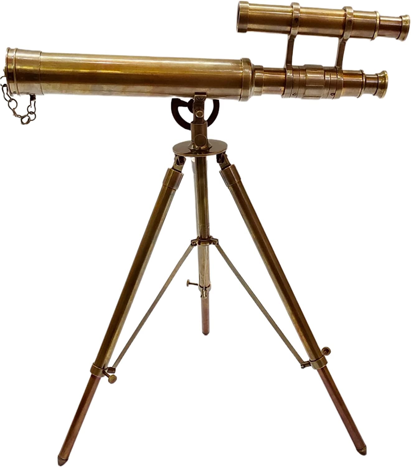 - Telescope Tube Length : 27" inches, Height : 60" - 70" inches extendable, Ground Diameter : 25" inches, Weight : 7.5 kg , Magnification : 42 X, High-Quality Construction: Crafted from solid brass with a shiny finish, this nautical marine navy telescope exudes elegance and durability