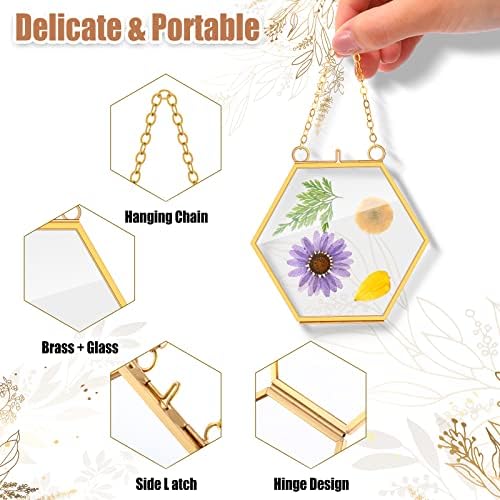 - Suitable Size: the pressed flower frame is designed with 5 sides, each side is about 1.85 inches/ 4.7 cm, the total length is about 4 inches/ 9.4 cm, the height is about 3 inches/ 8.3 cm, and the chain is about 2.6 inches/ 6.5 cm, the geometric design presents a sense of beauty and sophistication, easy to attract the attention of others and show your taste