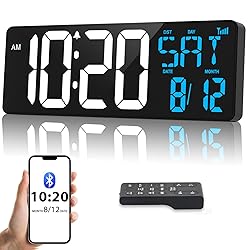 Xflyee 17" Large Digital Wall Clock with Bluetooth Sync, Remote Control, Alarm Big LED, Auto DST Temperature for Classroom Bedroom Garage Gym