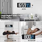 【Auto Bluetooth Time Synchronization】- The new digital wall clock automatically connects to your smartphone via Bluetooth and syncs with real-time settings each day. It delivers superior precision with no manual adjustments required, making time setup incredibly simple. 【 Multi-function & Remote Control】- This digital clock large display is a versatile powerhouse, combining clock, alarm, and timer functionalities to suit various needs. For convenience, it also comes with a remote control that operates up to 32 feet away, making it easy to use even when mounted on a wall. 【 Clear and Easy to Read】- Unlike typical fixed-color digital clocks on the market, our large digital wall clock distinguishes time and date with white and green, offering higher contrast for clarity. Ideal for seniors with declining or impaired vision. 【Auto DST】- The large digital clock automatically adjusts for daylight saving time without manual intervention, seamlessly transitioning in March and November to maintain continuity and accuracy. 【Auto Dimming】- The digital clock wall adjusts brightness automatically with its built-in light sensor, ensuring comfortable viewing at all times. Plus, its screen brightness can be manually turned off, making it especially friendly for those who prefer a dark sleep environment.