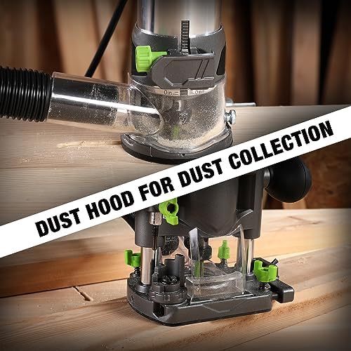 - Precision Operation: Smooth rack and pinion depth adjustment knob ensures precise operation for a variety of cabinetry and woodworking applications Rubber-wrapped handles offer a comfortable grip and reduce hand pressure for long-term work The transparent dust hood controls flying wood chips and provides an overview of the processing conditions
