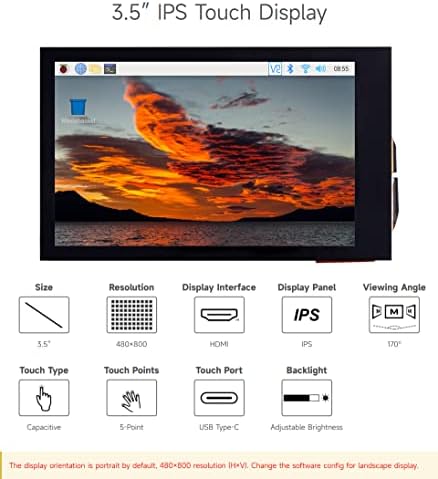 waveshare 3.5inch IPS Capacitive Touch LCD Display, Compatible with Raspberry Pi 5/4B/3B/Zero/Zero W/Zero 2W/Pico/Pico W/Pico WH, 480×800, Adjustable Brightness