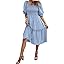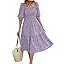 PRETTYGARDEN Women's Summer Casual Dresses 2025 Spring Puff Sleeve Square Neck A-line Flowy Boho Floral Smocked Midi Dress