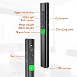 Wireless Presentation Clicker PowerPoint Presenter Remote: Rechargeable Green Laser Pointer Clickers for Computer/Mac/PPT/Slideshow/Google Slide Advancer