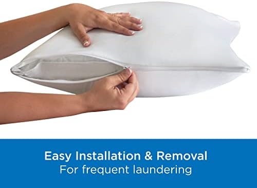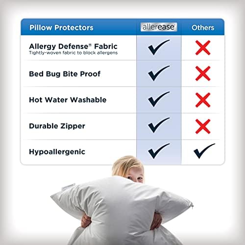 AllerEase Maximum Allergen Barrier and Bedbug Bite Proof Soft Comfortable Machine Washable Zippered Pillow Protector, Standard/Queen Size, 2 Pack White