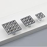 ESreake 4 Pack Extra Large Square Crystal Rhinestone Cabinet Knobs Pulls Handle,Shiny Diamond Glass Dresser Drawer Knobs Handles for Cupboard Wardrobe Dresser (Square 1.26" Hole Centers, 4 Pack)