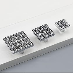 【SHINY】 Made of clear cut crystal glass and zinc alloy ,glittering and sparking. 【Provide a Variety Of Screws To Meet Different Wood Thickness】 Three commonly used screw lengths are provided: 0.87", 0.98" and 1.18" to meet the thickness of most furniture.Washers are also provided. 【Easy to Install】 It's quite easy for you to install them just with home little tool. 【Multi-Purpose】 Whether used to replace old handles or to fit on a new cabinet, it makes the furniture cabinet sparkle,perfect for doors for any purpose such as drawer door, wardrobe door, cabinet door, cupboard door, also for cabinet dresser drawers cupboard wardrobe bookcase.Great helper to pull out drawer,cabinets and other furniture. 【Package】 4 × Drawer Pulls;8 × 0.87" Screws;8 × 0.98" Screws;8 × 1.18" Screws;16 × Washers(Thickness 0.03")
