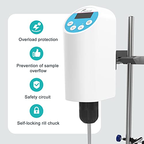 - JOANLAB Digital Overhead Stirrer:Excellent corrosion resistance .Brushless DC motors with low noise for high safety and maintenance-free.Equipped with two mixing paddles to meet your different needs.Self-lock drill chuck design,easy operation