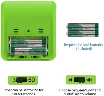 - Kid-Friendly: This timer does not have a distracting ticking sound. It features a disc that makes it easy for children to understand the passage of time visually. You can set the tone to be loud or low, and choose between an alarm time of 3 or 60 seconds.