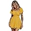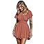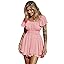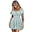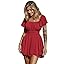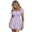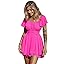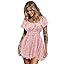 EXLURA Women's 2025 Summer Ruffle Short Sleeve Tie Back Romper Dress Square Neck A Line Cute Dressy Short Jumpsuits
