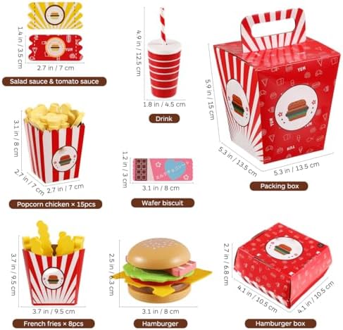 - Realistic Design: The simulated fast food items including burgers, fries, and beverages are crafted with intricate details to mimic real food, enhancing the pretend play experience