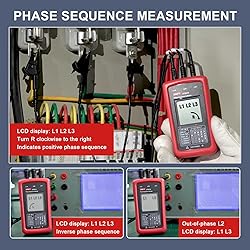 【AC Phase Sequence Tester】UT261A 3-phase rotation meter is used for determining 3-phase power phase sequence, missing phase indication. Also can perform resistance / capacitance / frequency measurement. 【High Accuracy Rotation Meter】The phase sequence tester with high accuracy and the 45mm jaw opening make it easy to operate. Small size, light weight, easy to carry, even can bear the impact of 2 meters high. 【Multi-function】Auto range / backlight / low battery indication; Continuity / diode / duty cycle; Data hold / flashlight / relative mode; Auto power off 【Occassions】1000A AC current measurement; 1000V AC/DC voltage measurement; 600A inrush current measurement. CAT II 1000V/CAT III 600V. 【What You Get】Comes with 1 rotation meter, 3 testing leads with alligator clips, battery, 1 certificate of conformity, 1 user mannual, and friendly customer service. 【Worry-free Purchase】We provide 1 months warranty. If you need technical support and any problems with the order, please contact us any time, we will deal with it in 24 hours in working days.