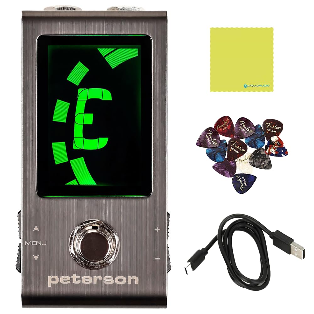 - COMPLETE BUNDLE: Our Peterson tuner clip on strobe tuner set comes with a fantastic bonus! You'll receive 12 genuine guitar picks sampler pack and a premium Liquid Audio Polishing Cloth, making this bundle an all-in-one guitar accessories solution for musicians.