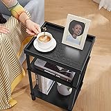 ZEXVIDA Side Table for Small Spaces,3 Tier End Table Under Desk Storage with Storage Shelf, Small Bedside Table,Nightstand for Living Room, Bedroom, Office,Black