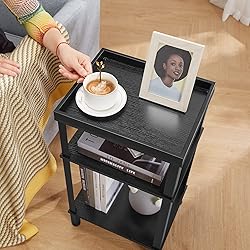 - ZEXVIDA Side Table for Small Spaces,3 Tier End Table with Storage Shelf, Small Narrow Thin End Table Bedside Table,Nightstand for Hallway,Living Room, Bedroom, Office,Black