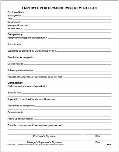 Employee Performance Improvement Plan Form, 8.5 x 11, 75 Pack, J. J. Keller & Associates, Inc.