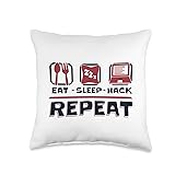 Eat Sleep Hack Repeat Ethical Hacking White Hat Hacker Throw Pillow