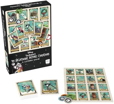 • This collectible Disney Tim Burton game is officially-licensed and features artwork and illustrations of characters and references from The Nightmare Before Christmas as well as other artwork inspired by Spanish words and Mexican culture.