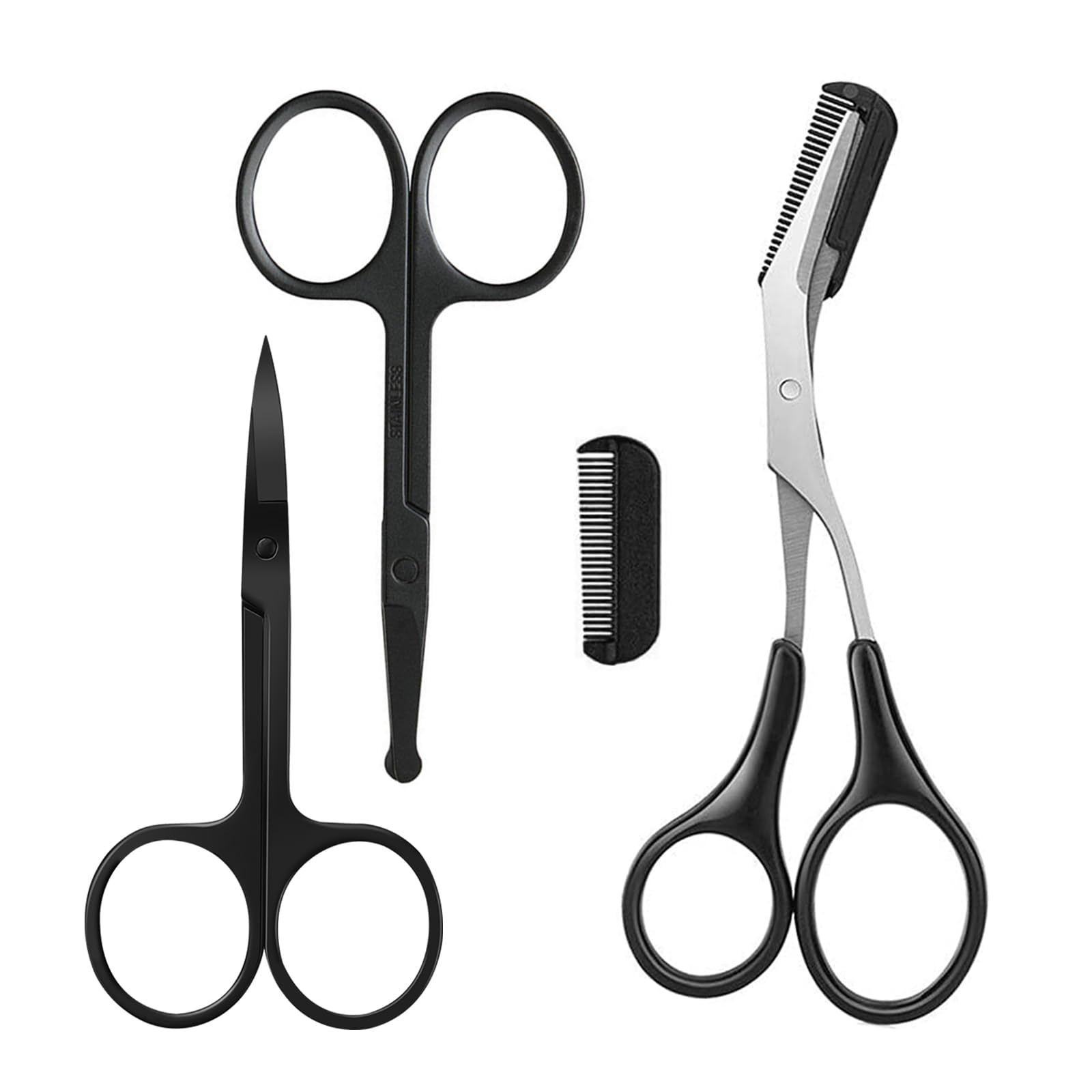 Small Scissors, 3.5in Beauty Scissors,for Personal Facial Hair Grooming ,Curved and Round Design, for Trim Men/Women Eyebrows Trimming, Eyelashes,Nose Hair, Ear, Mustache 3 Pack