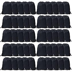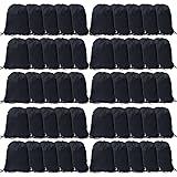 - 50 Pcs Drawstring Bags, Bulk Draw String Backpack, Cinch Polyester Bag for Gym Sport, Black