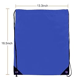 Package Include: 20 pcs Royal Blue of drawstring bags stuff sack. Our polyester drawstring bag is suitable for various occasions like travel, sports,outdoor activities,gym,supermarket, home storage,summer picnic,hiking,party favors and so on. Perfect Size : Backpack measures approx. 41 cm/16.5 inches in length and 33 cm/13.3 inches in width, it is big enough to carry a pair of shoes, bottle, basketball, an umbrella, a few books, lunch or clothing. Sturdy Material : Made of Washable 100% Polyester Fabric, bottom corners are reinforced with triangle PU leather with 2 meral grommets. It is a Lightweight fabric that is also very sturdy and withstands daily wear and tear. Unique Customize : Drawstring bags have no letters or patterns.You can print any logo or pattern on it to make a unique package to make the best gift. Gift Bags : You can bought drawstring backpack for goodie bags at a family reunion,the drawstring for open and closure which can hold the inside items well, no need to worry about missing your items, very convenient for your use.