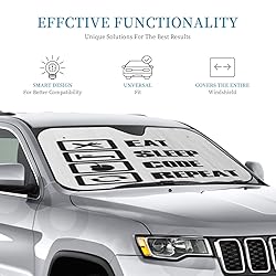 Eat sleep code repeat, funny, programmer Gifts For Women Men Car Window Shades: The windshield sun shade measures about S:130 x 70 cm/ 51 x 27.5 inches/M:140 x 76 cm/ 55 x 30 inches, proper size to fit most vehicles, such as SUVs, trucks, minivans and more; Please check your windshield size to make sure the item fits. Eat sleep code repeat, funny, programmer Gifts For Women Men Sun Shade Car Windshield: These car shade front windshield umbrellas are made of aluminum foil bubble material to reflect strong sunshine, which can provide you with a privacy space and help cool the car interior, they can also prevent the dashboard and interior decoration in your car from fading and cracking caused by sun, bringing you a comfortable using experience. Eat sleep code repeat, funny, programmer Gifts For Women Men Car Sun Shade Windshield: The sun visor for car windshield adopt foldable design, so you can fold the visor quickly, practical and convenient, saving your time and energy, equipped with elastic string, which can be fixed, doesn't take up too much space, portable and easy for you to carry and store. Eat sleep code repeat, funny, programmer Gifts For Women Men Car Accessories: Unique Design Makes Your Vehicle Special under Sunshine. Funny visor reflects personality and attitude. Get rid of miserable with your car from harmful UV radiation rays. Eat sleep code repeat, funny, programmer Gifts For Women Men Sunshade For Car Windshield: Just slide the two visors into place above the dashboard, equipped with two suction cups at the bottom to hold the visor to the windshield for added stability, you can attach the visor to the windshield for increased stability; When you use the suction cup, you can soak it in the water to increase the adsorption force, easy to install for you.