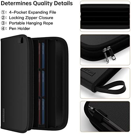 ENGPOW Expanding File Folder with Multi-Function Pockets,Fireproof File Organizer Accordion Document Organizer with Letter A4 Size Storage For Important Document,Money,Card,USB,Passport,4-Pocket,Black