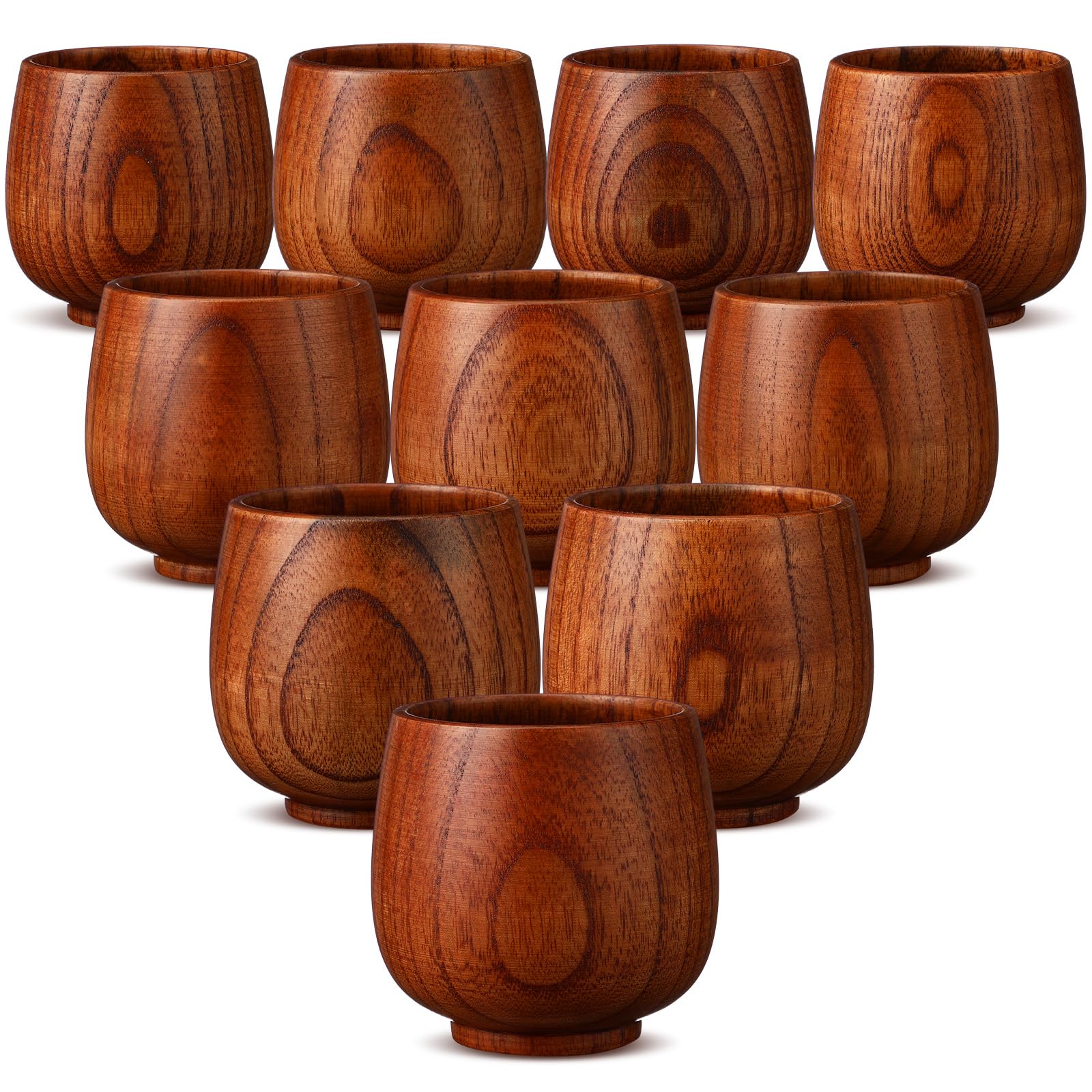 Gerrii 10 Pieces Wooden Tea Cup Wood Coffee Mug Water Japanese Solid Drinking Teacup Glass for Wine, Beer, Milk, Hot Drinks, 6 oz