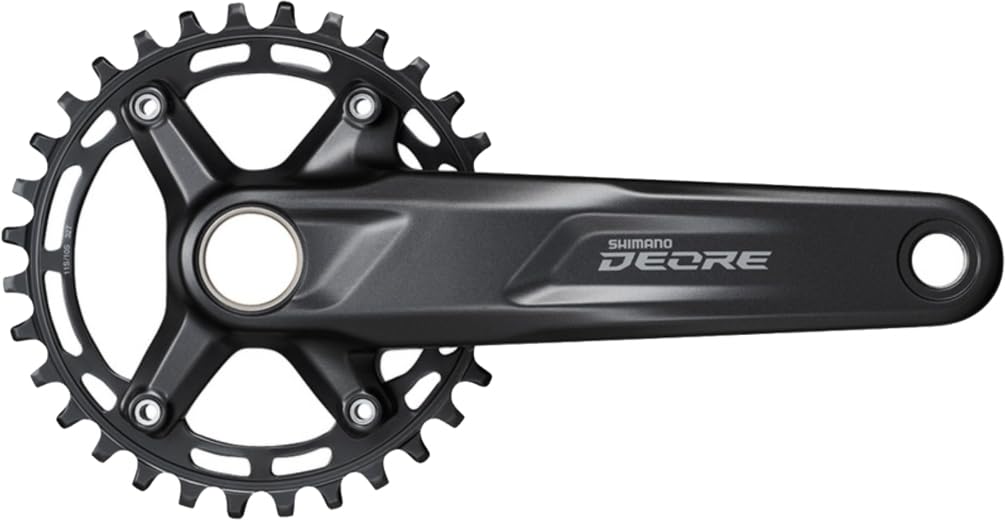 Boost your mountain biking performance with the CUES FC-U6000-1 Crankset - a robust, high-performance component designed for serious riders seeking durability, precision, and versatile gearing. Crafted with innovative materials and engineering, this 170mm crankset is perfect for demanding trails, rough terrains, and e-bike adventures. Materials & Construction Built with durable, lightweight aluminum crank arms, the CUES FC-U6000-1 ensures reliable performance without adding unnecessary weight. The Hollowtech II spindle technology provides increased rigidity and strength, resulting in efficient power transfer and enhanced durability under strenuous riding conditions. Performance & Engineering Engineered for seamless pedaling in challenging environments, this crankset features Dynamic Chain Engagement+ with specialized gear tip shapes. This innovative design improves chain retention and engagement, giving you confidence to tackle technical climbs and rugged descents. Compatible with 9, 10, and 11-speed LINKGLIDE and HG chains, it offers seamless gear transitions and smooth operation. Components & Technology The asymmetric 96 BCD (Bolt Circle Diameter) allows for optimal chainring positioning, maximizing power efficiency and chainring stability. The 32-tooth single chainring setup provides a versatile gear range suitable for various terrains. Designed for frames with 68/73mm bottom brackets, this crankset works seamlessly with Hollowtech II bottom brackets (sold separately) for quick installation and a secure fit. Style & Use Case Finished in sleek black, the CUES FC-U6000-1 complements modern mountain bikes and e-bikes, making it an excellent choice for trail riding, enduro, or e-mountain adventures. Its wide-range gearing and robust build make it ideal for riders seeking reliability and performance on tough terrains or steep climbs. Innovative & Differentiating Features - 52mm Chainline for optimal clearance and frame compatibility -